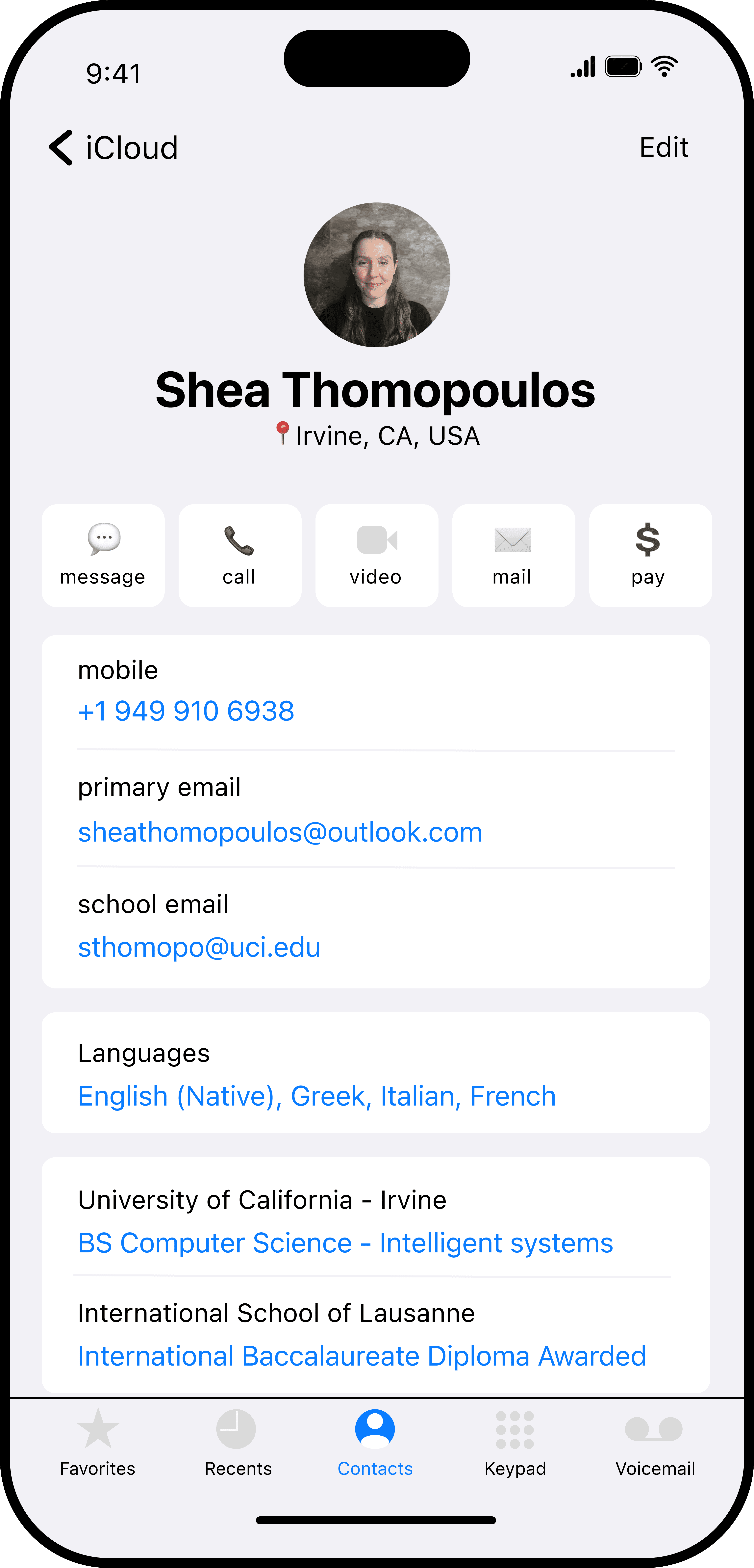 Lived Countries: United States (CA, TX), Italy, Switzerland